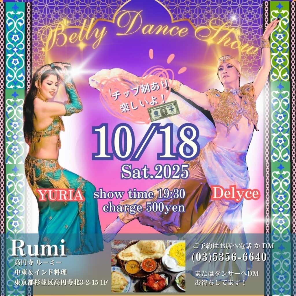 10/18(土)高円寺のRUMIに出演させて頂きます❣️今回も大人気のDelyceさんも登場します🌺楽しみですね❣️