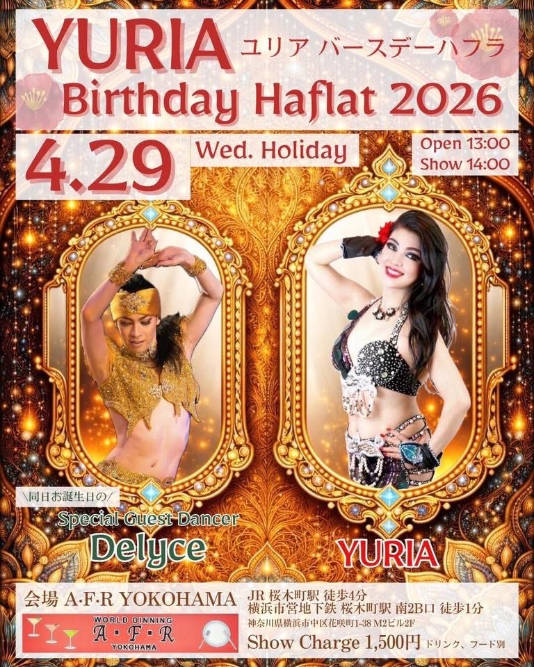 4/29(水・祝)は、桜木町のAFR Yokohamaにて恒例のBirthday Haflat🌺を開催します❣️